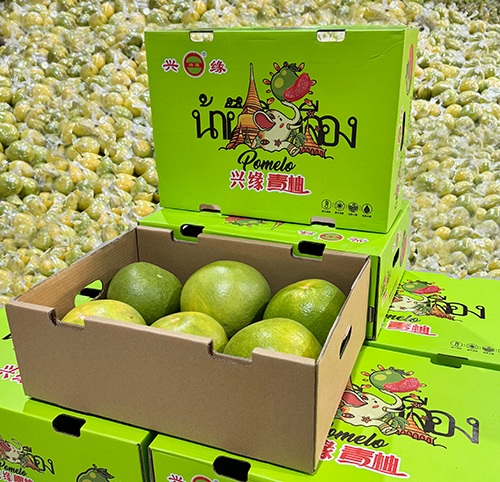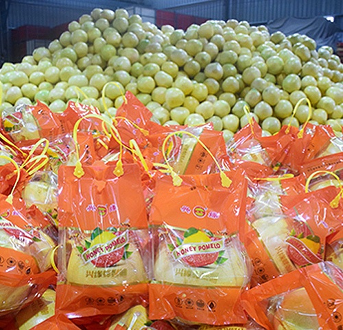 公司擁有標(biāo)準(zhǔn)金柚園基地2100畝,泰國青柚700畝,核心果農(nóng)種植基地6500畝,加工廠區(qū)面積約2萬平方米,有10條全自動(dòng)柚果分級(jí)包裝系統(tǒng),日均加工柚果300多噸。